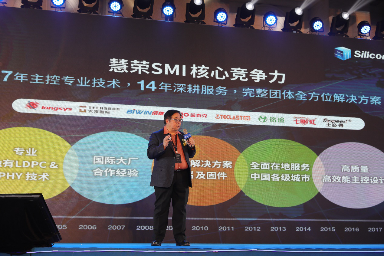 CFMS 2018 invites worldwide leading corporations, including Google, Intel, Lexar, Micron, Nvidia, Samsung, and other overseas high-tech companies, as well as domestic companies, including BYD, Dahua, Foresee, Integrated Circuit Found (ICF) / Huaxin Investment, JD.com, Phison, Tsinghua Unigroup, Yuanhe Huachuang, Yangtze Memory Technologies (YMTC), Yeestor Microelectronics, etc. Silicon Motion was also invited to the event and delivered a speech as Silicon Motion is the world’s largest manufacturer of merchant SSD controllers by value and by number of product units.