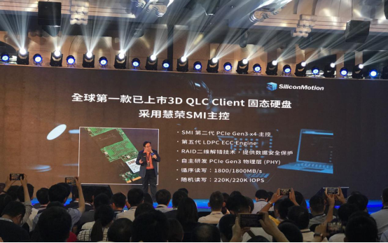 Silicon Motion is also in the leading position of supporting emerging technologies. The worldwide first 3D QLC client SSD is equipped with the PCIe Gen3 x4 controller from Silicon Motion and the PCIe Gen3 physical layer is independently developed by Silicon Motion. The SSD controller utilizes the fifth-generation NANDXtend™ ECC technology which combines LDPC hard and soft decoding with RAID protection to provide the best data reliability with lower cost 3D QLC. Besides, the performance of sequential read, sequential write, random read and random write are 1800MB/s, 1800MB/s, 220K IOPS and 220K IOPS respectively.