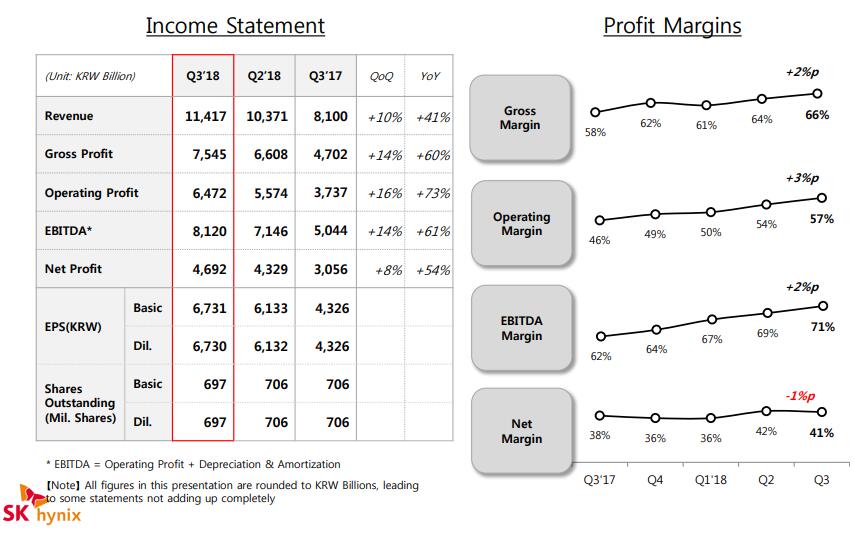 SK Hynix Inc.announced financial results for its third quarter 2018 ended September 30, 2018. The Company reported its new record-high quarterly revenue, operating profit, and net income.