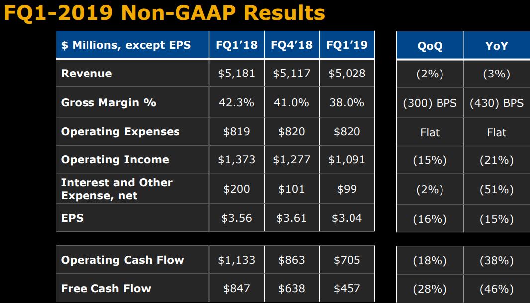 In the year-ago quarter, the company reported revenue of $5.2 billion, operating income of $905 million and net income of $681 million, or $2.23 per share. Non-GAAP operating income in the year-ago quarter was $1.4 billion and non-GAAP net income was $1.1 billion, or $3.56 per share.