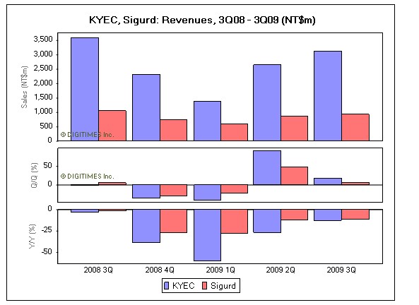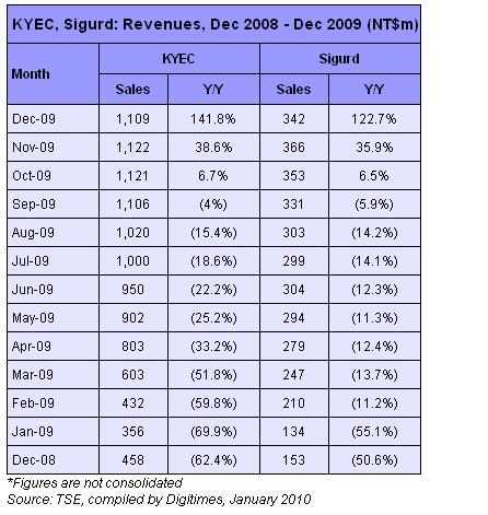 KYEC has announced revenues for the fourth quarter of 2009 grew 7.2% sequentially to NT$3.35 billion, beating market estimates of 3-5% growth. The company expects revenues to drop at a single-digit rate sequentially in the first quarter, despite seasonality.