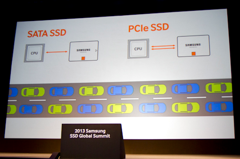 During our time at Samsung's SSD Summit, we looked at (but didn't touch) technologies that the company is expected to introduce over the next year. Like many of its competitors, Samsung is is investing heavily in next-generation protocols, physical interfaces, and form factors. PCI Express is where the company sees storage moving to next.