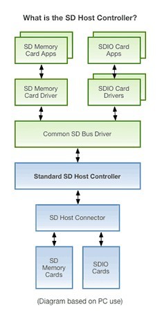 The SD host controller specification manages both SD memory cards and a variety of SDIO cards. This simplifies host system and driver designs by using standardized implementation that reduces product development time. It defines a standard register set to control SD memory cards and SDIO cards.