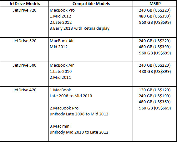 Transcend's JetDrive SSD Upgrade Kits consist of four SSD models, each fully tested for compatibility and reliability, and backed by Transcend's five-year limited warranty.