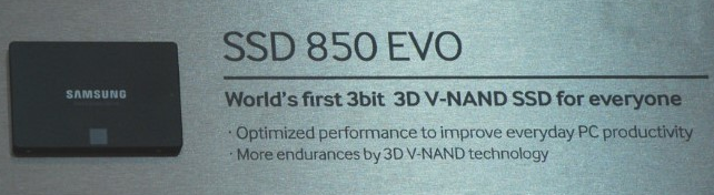 Samsung and the world's second solid-state drive based on 3D vertical-NAND flash technology, the 850 EVO, was spotted on marketing material, ahead of its launch. Closely trailing the company's flagship 2.5-inch SATA 6 Gb/s drive, the 850 Pro, the 850 EVO will have lower price per GB. The drive will be based on Samsung's 3-bit (TLC) 3D V-NAND chips, and Samsung's updated triple-core processor. Given how Samsung is offering a stunning 10-year warranty with the 850 Pro, this drive could come with a similar warranty. The 850 Pro, for example, is rated with a TBW ceiling of 150 TB, double that of its predecessor.