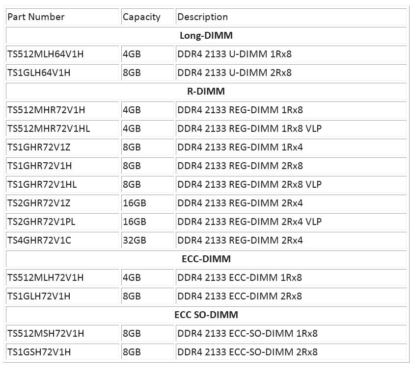 Transcend Information, Inc. (Transcend), a leading manufacturer of industrial-grade products, is proud to announce the launch of the DDR4 memory module series. The series includes DDR4 2133 MHz UDIMMs, RDIMMs, ECC-DIMMs and ECC SO-DIMMs, which are fully compatible with the latest Intel Xeon E5-2600 v3 server family processor, Haswell-E CPU with X99 chipset and micro servers. Transcend's DDR4 series boasts superior performance, 1.2V ultra-low power consumption, and increased reliability. All these features make it perfect for cloud computing, virtualization, and high-performance computing technologies.