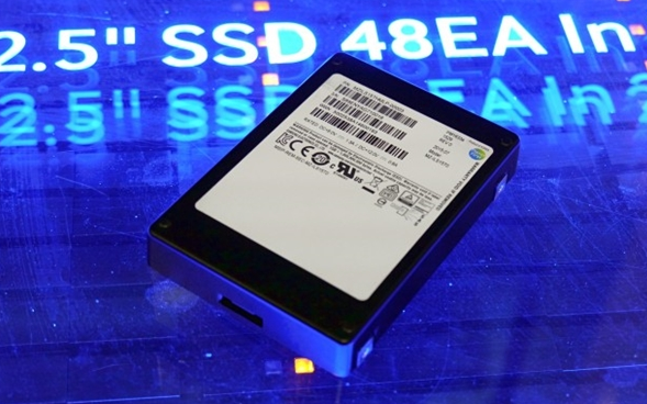At the 2015 Flash Memory Summit, Samsung announced the fruition of its swanky new 48-layer 3D V-NAND chips, the PM1633a. Built in the 2.5-inch form-factor, and featuring a SAS 12 Gb/s interface, this drive offers an unformatted capacity nearing 16 TB (15,360 GB to be precise). The drive relies on ten 48-layer stacks of 256 Gb 3-bit NAND flash dies, making up 15,360 GB of unformatted capacity. Samsung showed off a system with 48 of these drives, making up 720 TB of total storage.
