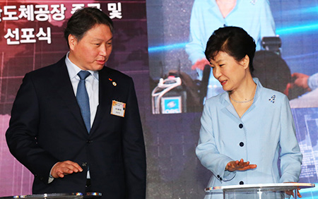 "Korea's leadership in manufacturing is being challenged. A new order prevails in industries that Korean companies have strength and advantages in amid growing rivalry. This is why SK's massive chip investment has substantial meaning," President Park said.