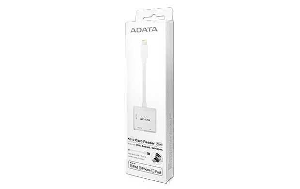 ADATA Technology, a leading manufacturer of highperformance DRAM modules and NAND Flash products, today launched the AI910 Lightning Card Reader Plus. Featuring SD and Micro SD slots with support for up to 256GB capacity, the AI910 is a "three-way" device, allowing users to backup, read, and share content across iOS, Android, and Windows. The proprietary ADATA i-Memory app enables easy data management, with support for nearly 40 file formats, Ultra HD 4K video, and files larger than 4GB. It has a Lightning connector (MFi certified) and ships with Micro USB/USB cables to ensure seamless connectivity out of the box. The AI910 is covered by a two-year warranty.