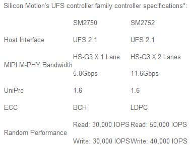 The Silicon Motion UFS 2.1 family is currently sampling to select NAND OEM partners, and production ramp is expected later this year.