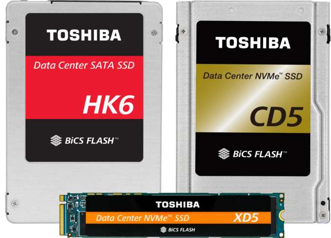 The new lineup of SSDs utilizes Toshiba's next-generation BiCS FLASH 3D flash memory, which is based on the company's industry-leading 64-layer architecture and uses 3-bit-per-cell (triple-level cell, TLC) technology. Additionally, the CD5, XD5 and HK6-DC SSD families are designed with end-to-end vertical integration to deliver quality and reliability.