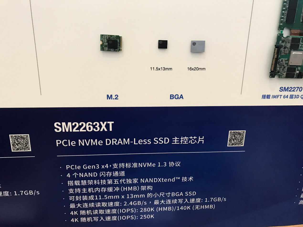 Introduced for enterprise and datacenters applications, the SM2270 supports PCIe Gen3 x8, 16 flash memory channels and 64/96-layers 3D NAND, and the maximum capacity up to 16TB. The sequential read/write, random read and sustained random write are 3.2GB/s, 2.8GB/s, 800K IOPS and 200K IOPS respectively, which fully satisfies the demands of enterprises and datacenter SSD. Thanks to the excellent performance, while SM2270 is launched, the controller is adopted by many enterprise and datacenters used in their latest products.