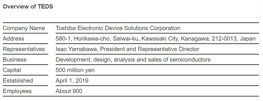 Toshiba Electronic Devices & Storage Corporation (TDSC) today announced the consolidation of two of its subsidiaries, Toshiba Microelectronics Corporation (TOSMEC) and Toshiba Discrete Semiconductor Technology Corporation (TDIT), into a new company, Toshiba Electronic Device Solutions Corporation (TEDS). The move is expected to strengthen capabilities in proposing solutions and bringing greater efficiency to R&D for the semiconductor business. TEDS will start operation on April 1.
