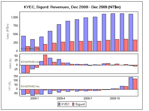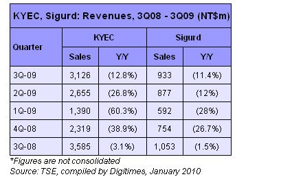 KYEC has announced revenues for the fourth quarter of 2009 grew 7.2% sequentially to NT$3.35 billion, beating market estimates of 3-5% growth. The company expects revenues to drop at a single-digit rate sequentially in the first quarter, despite seasonality.