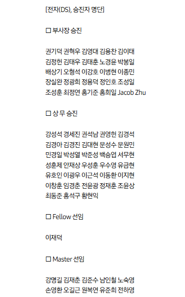 List of Personnel Adjustments in the Samsung Electronics DS Division: