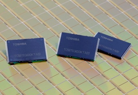 Toshiba is also developing 3-bit-per-cell chips by using this process technology and aims to start mass production in the second quarter of this fiscal year. The company will initially introduce 3-bit, multi-level-cell products for smartphones and tablets by developing a controller compatible with eMMC, and will subsequently extend application to notebook PCs by developing a controller compliant with solid state drives (SSD).