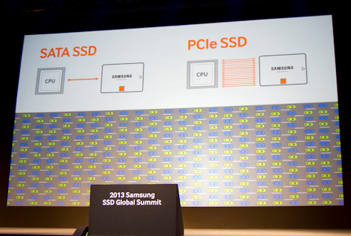 During our time at Samsung's SSD Summit, we looked at (but didn't touch) technologies that the company is expected to introduce over the next year. Like many of its competitors, Samsung is is investing heavily in next-generation protocols, physical interfaces, and form factors. PCI Express is where the company sees storage moving to next.