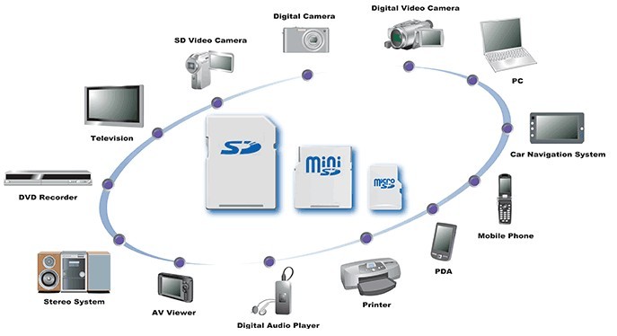 SD technology is the de-facto industry standard for mobile phones, digital cameras, MP3 music players, personal computers, printers, car navigation systems, electronic books, and other consumer electronic devices. SD technology is used in some 400 products across dozens of product categories and in more than 8,000 models.