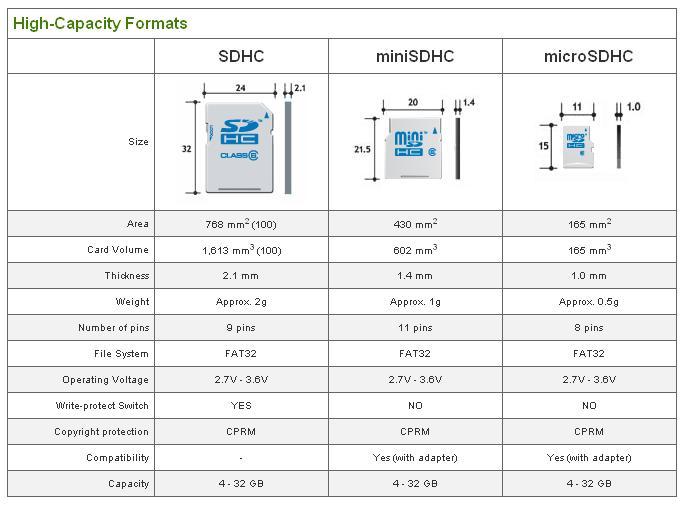 The next-generation SDXC (eXtended Capacity) memory card specification, pending release in Q1 2009, dramatically improves consumers’ digital lifestyles by increasing storage capacity greater than 32 GB up to 2 TB and also increasing SD bus interface read/write speeds to 104 MB per second in 2009 with a road map to 300 MB per second. SDXC will allow your electronic devices – from laptops to cameras, camcorders and mobile phones – to store more content and to download content faster than ever before.