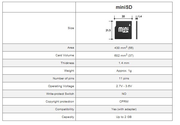 The miniSD card was developed to meet continuing industry demands for smaller mobile phones. The miniSD is just 37 percent of the SD card's size, and it packs all of the storage power, speed and other benefits into a small card - including copyright protection. By inserting the miniSD card into the miniSD adapter, you can share a variety of digital data among standard SD card-enabled products.