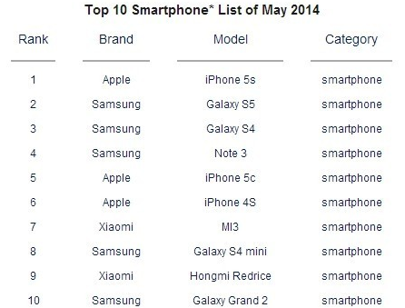 Interestingly, Xiaomi's Mi3 comes in at 7th place. Kudos to the three-year-old company.