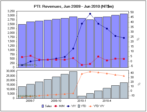PTI saw consolidated figures total NT$9.285 billion in the second quarter, compared to NT$8.65 billion posted in the first quarter. The 7% sales growth was in line with the company's guidance.