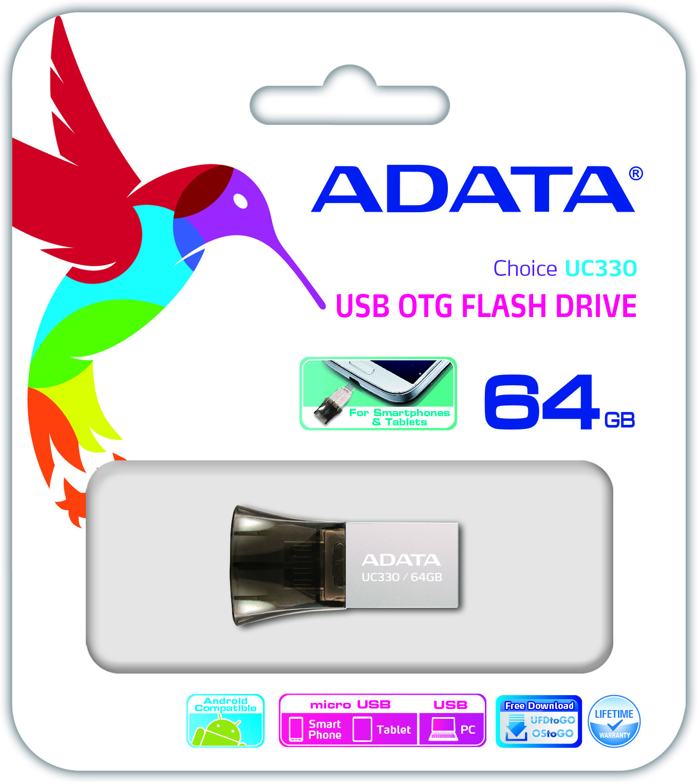 Along with a lifetime warranty, customers who purchase ADATA's Choice UC330 Dual USB Flash Drive can also enjoy complimentary OStoGO and UFDtoGO software packages. With OStoGO you can store your Windows setup DVDs on your UC330, and then install the OS from your UC330 as a USB bootable device. With UFDtoGO, enjoy many tools such as PC-Lock, Data Compression, Browser Favorites Synchronization, and many more.